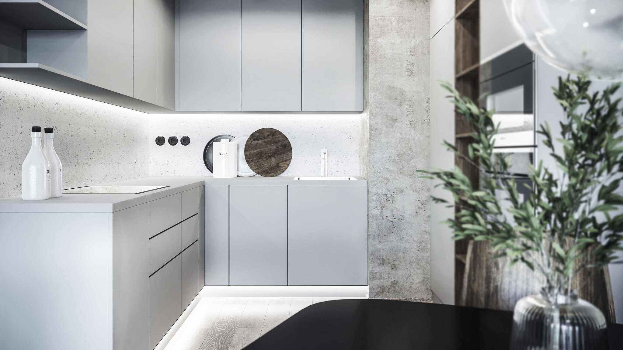 Kompletní studie interiéru bytu v developerském projektu.